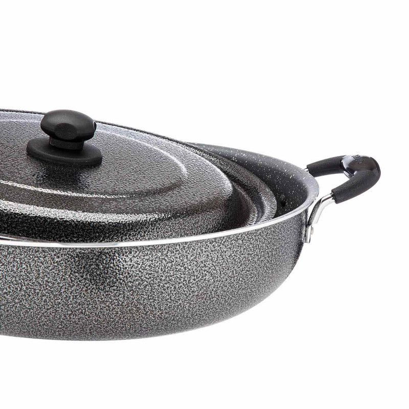 این محصول فراتر از یک ماهیتابه معمولی عمل میکند. پوشش داخلی گرانیتی آن، خیال شما را از بابت چسبیدن مواد غذایی کاملاً راحت کرده و به شما اجازه میدهد با کمترین میزان روغن، غذاهایی سالم و رژیمی طبخ کنید. یکی از برجستهترین نقاط قوت این مدل، بدنه و درب تمام آلومینیومی آن است؛ این ویژگی باعث میشود حرارت به صورت کاملاً یکنواخت در تمام ظرف پخش شده و غذا به هیچ وجه نسوزد. اما شاهکار طراحی این محصول، قابلیت استفاده در فر است. برخلاف تابههای درب شیشهای یا دستههای پلاستیکی معمولی، ساختار فلزی و مقاوم دستهها و درب این محصول به شما این آزادی عمل را میدهد که فرآیند پخت را داخل فر تکمیل کنید. دستههای عایق از جنس الترامید در استفاده روی گاز نسوز بوده و ایمنی دستان شما را تضمین میکنند، ضمن اینکه طراحی دو دسته بودن آن، جابجایی تابه پر و سنگین را بسیار آسانتر کرده است.
