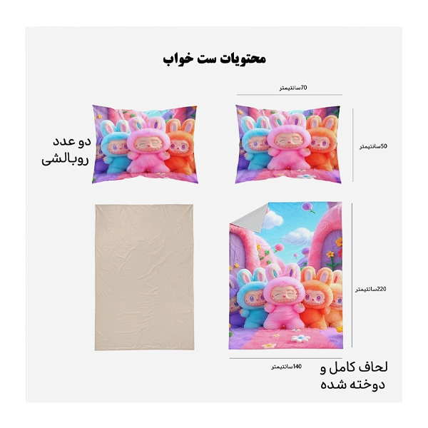 | ست کامل | 4تکه شامل: لحاف – کاور بالشت (2عدد) – ملحفه کشدار |