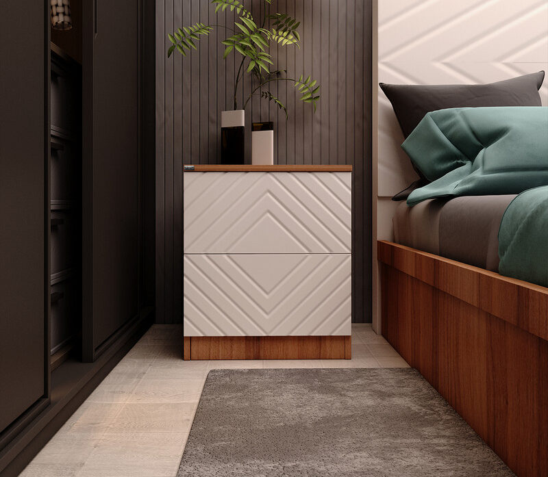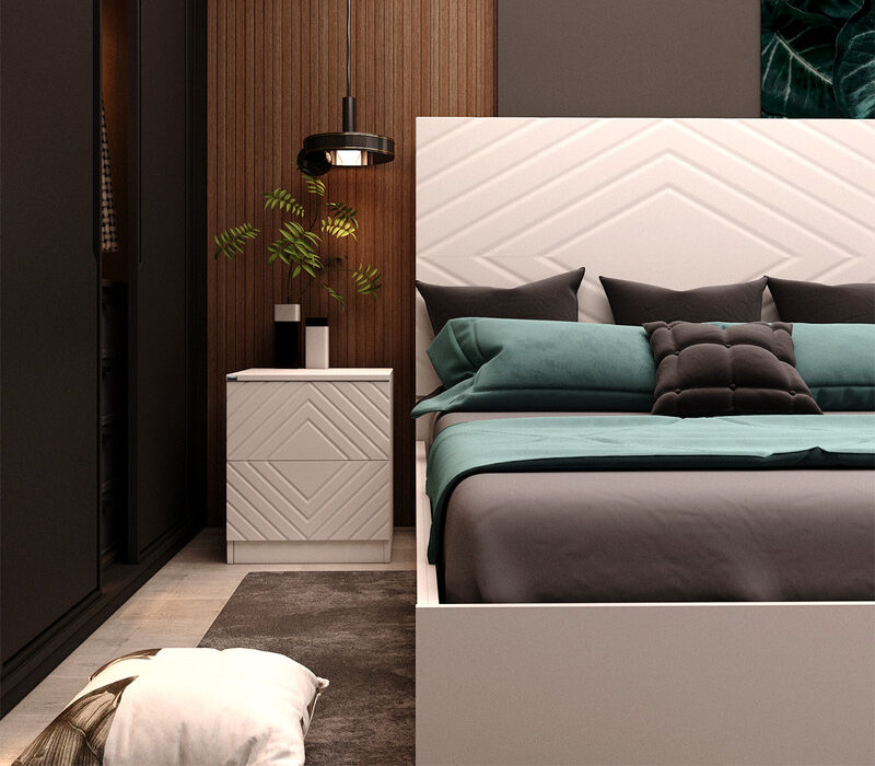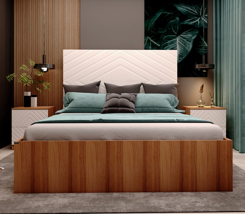 - ست کامل و هماهنگ: شامل تخت و پاتختی که دکوراسیون اتاق را یکپارچه میکند.