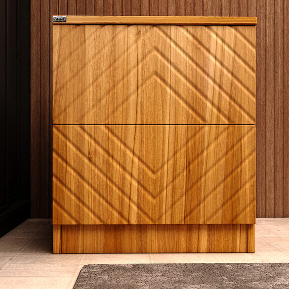- جنس نئوپان: نسبت به امدیاف (MDF) یا چوب خالص، مقاومت کمتری در برابر آب و فشار نقطهای شدید دارد (البته روکش وکیوم تا حد زیادی آن را پوشش داده است).