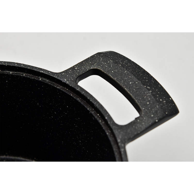 ویژگی متمایز این قابلمه، دستههای یکپارچه آن است. دستهها دقیقاً از جنس بدنه هستند و هیچ پیچ و مهرهای ندارند. این یعنی شما میتوانید با خیالی راحت قابلمه را داخل فر قرار دهید تا تهچین، مرغ یا نانهای حجیم بپزید، بدون اینکه نگران ذوب شدن دستهها باشید. پوشش داخلی از گرانیت ضدچسب باکیفیت است که امکان آشپزی رژیمی و کمروغن را فراهم میکند. درب پیرکس آن نیز به شما اجازه میدهد تا بدون هدر رفتن حرارت، مراحل پخت را زیر نظر داشته باشید.