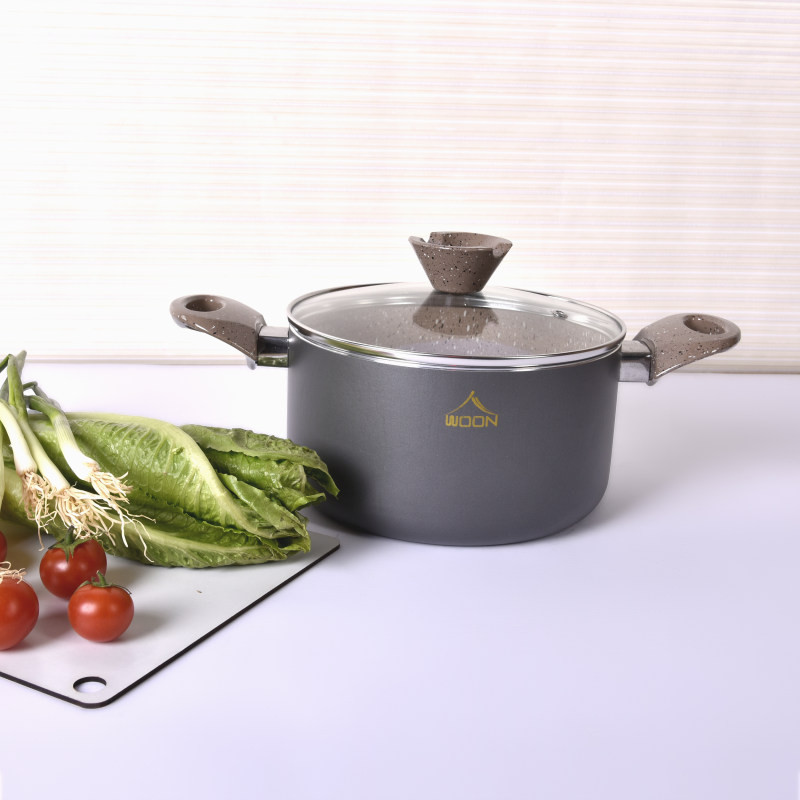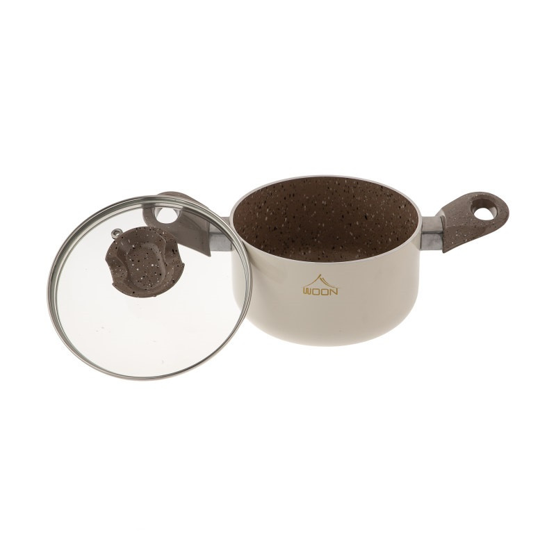 بدنه آلومینیومی این محصول با رنگ مقاوم به حرارت پوشیده شده است؛ یعنی برخلاف قابلمههای ارزانقیمت، رنگ بیرونی آن در اثر حرارت شعله تغییر نمیکند و سیاه نمیشود. روکش داخلی نیز از گرانیت باکیفیت است که نچسب بودن آن، پخت غذاهای حساس (مثل فرنی و حریره) را آسان کرده و شستشو را به کاری چند ثانیهای تبدیل میکند.