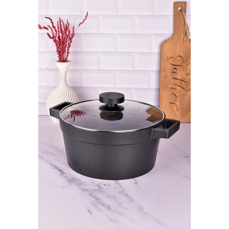 بدنه این قابلمه از چدن (دایکاست) ساخته شده است که ضخامت و مقاومت بسیار بالایی در برابر ضربه و حرارت دارد. ویژگی اصلی ظروف چدن، پخش یکنواخت گرماست؛ بنابراین برنج شما دانه دانه دم میکشد و خورشها به آرامی جا میافتند.
