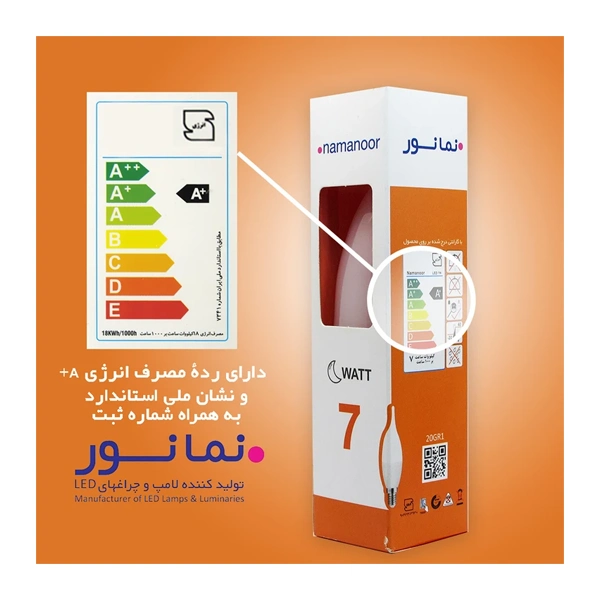 ویژگیهای لامپ الایدی 7 وات نمانور مدل اشکی پایه E14