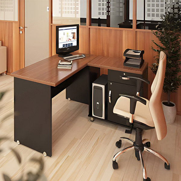 وقتی کناره میز را به میز کارمندی وصل کردیم، در نهایت میز کارشناسی و یا همان میز مدیریت را داریم که در این محصول با ابعاد 140×150 سانتی‌متر در بازار موجود است.