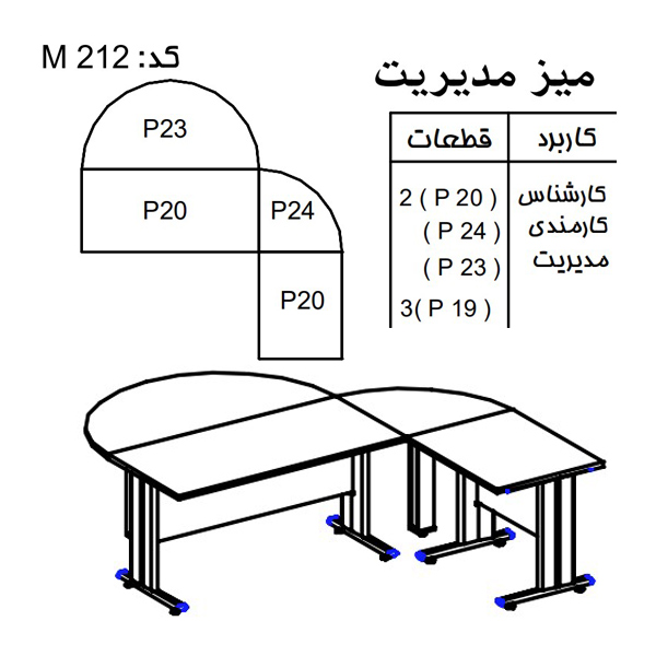ویژگی های میز مدیریت با کناره برند نوژن مدل M212