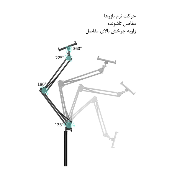 | ویژگی | ○ قابلیت چرخش ۳۶۰ درجه گیره جهت قرار گیری در بهترین حالت با توجه به موقعیت کاربر |