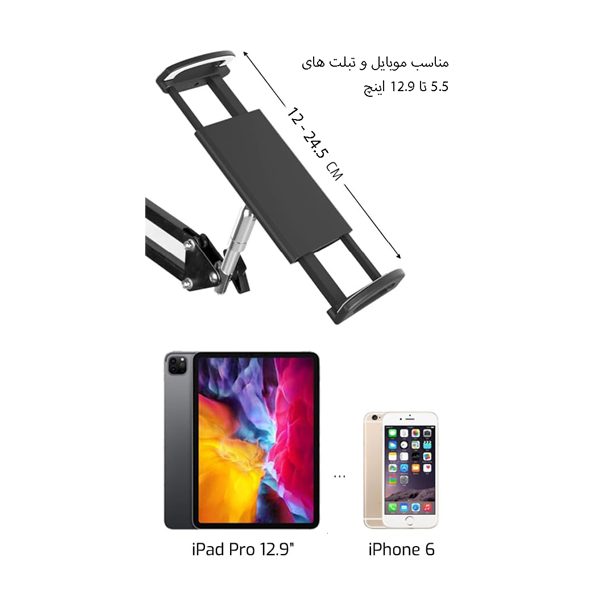 - ابعاد مناسب: موبایل و تبلت های ۵.۵ تا ۱۲.۹ اینچ