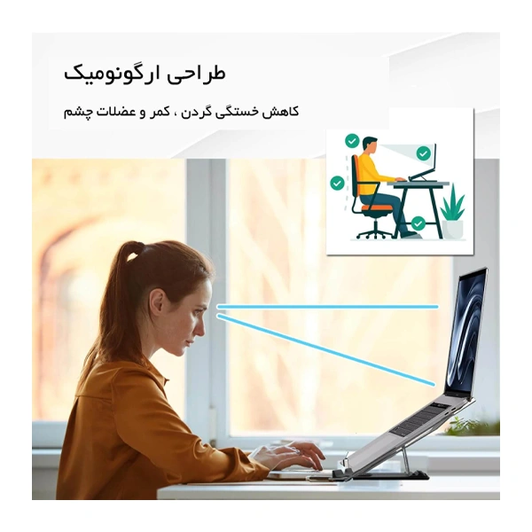 - قابلیت تنظیم ارتفاع و زاویه لپتاپ در موقعیتهای متفاوت بسته به نیاز کاربر