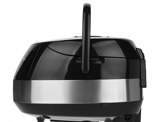 این دستگاه با دیگ 5 لیتری خود، فضایی سخاوتمندانه برای پخت غذای ۸ تا ۱۰ نفر فراهم میکند و با توان ۸۶۰ واتی، حرارت لازم را به سرعت و یکنواختی کامل در دیگ پخش مینماید. اما نقطه قوت اصلی این مدل، چندکاره بودن آن است؛ شما میتوانید با استفاده از سبد توری مخصوص، سیبزمینی و مرغ سوخاری ترد تهیه کنید (سرخکن)، سبزیجات و ماهی را بخارپز نمایید (بخارپز)، و خورشهای لعابدار و جاافتاده را در مدت طولانی با دمای پایین بپزید (آرامپز). پنل LED و دکمههای لمسی، کار با دستگاه را بسیار راحت کرده و به شما اجازه میدهد زمان پخت و نوع برنامه را دقیقاً تنظیم کنید. تایمر قابل برنامهریزی نیز این امکان را میدهد که زمان شروع پخت را تعیین کنید تا وقتی به خانه میرسید، غذایی گرم و تازه آماده باشد. بدنهی استیل ضدزنگ این مدل علاوه بر زیبایی، دوام بالایی دارد و به راحتی تمیز میشود.