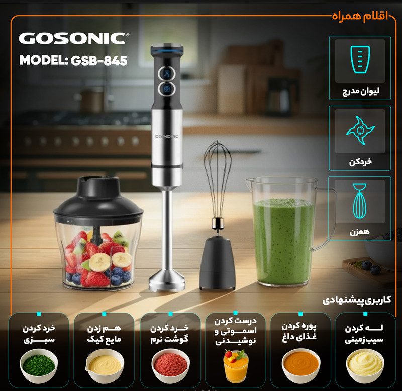 اگر میخواهید یک بار هزینه کنید و یک عمر با خیال راحت آشپزی کنید، مدل GSB-845 با موتور مسی خود بهترین انتخاب است. همین حالا گوشت کوب برقی گوسونیک مدل GSB-845 را از فروشگاه اینترنتی چندسو سفارش دهید و تفاوت کیفیت را در آشپزخانه خود احساس کنید.