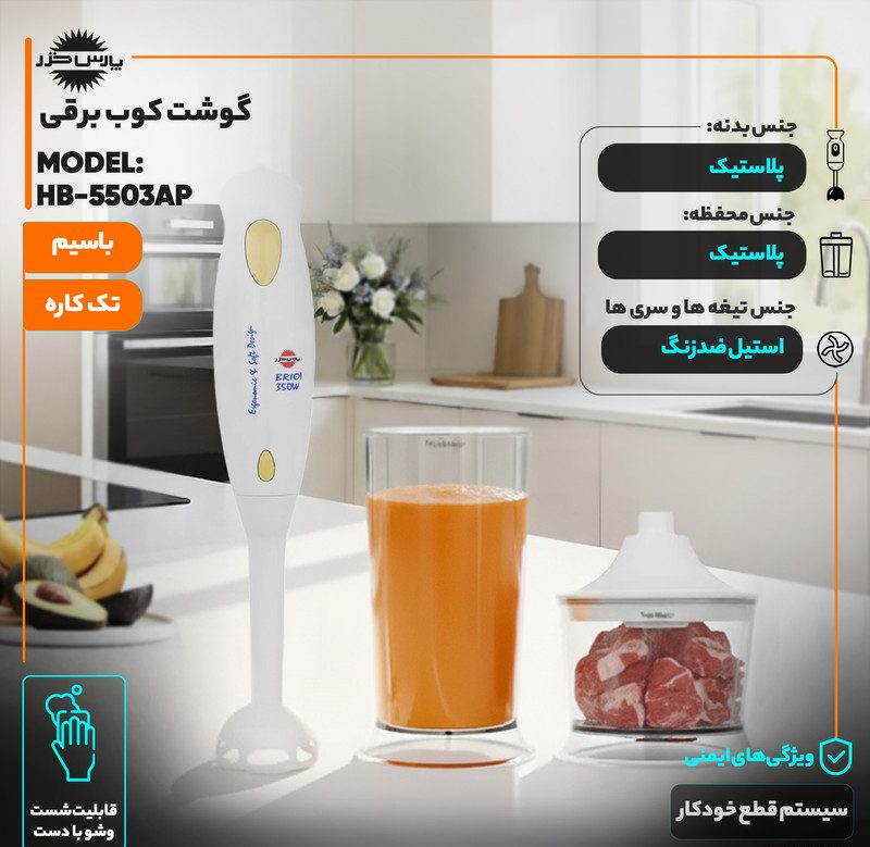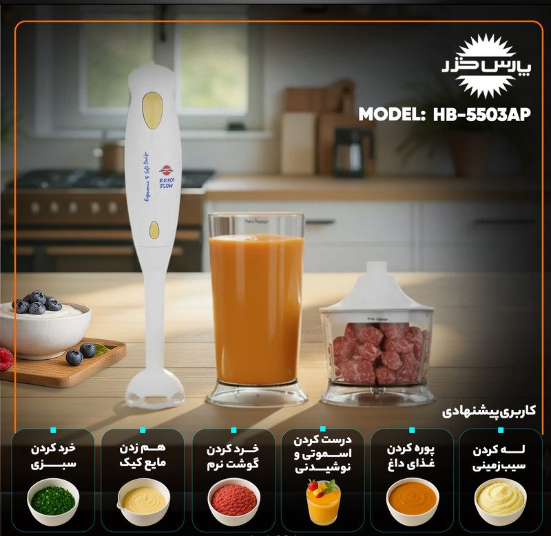 آشپزی نباید یک فرآیند خستهکننده و وقتگیر باشد، به خصوص وقتی میخواهید برای خانواده عزیزتان یک وعده غذایی سالم و تازه تدارک ببینید. گوشت کوب برقی پارس خزر مدل HB-5503AP دقیقاً همان ابزاری است که جای خالی آن در لحظات شلوغ آشپزی احساس میشود. این دستگاه طراحی شده تا مثل یک عصای جادویی، کارهای سخت و تکراری را در چند ثانیه برایتان انجام دهد و لذت آشپزی سریع و تمیز را به شما هدیه دهد. دیگر نگران کثیف شدن ظروف متعدد یا خستگی مچ دست نباشید؛ این محصول کوچک اما کاربردی، یار همیشگی شماست.